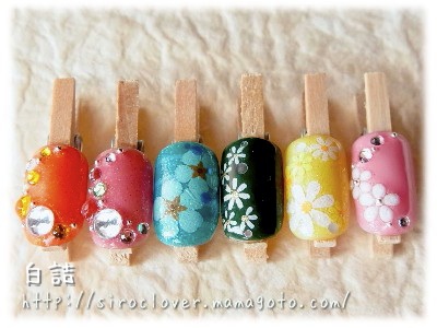 ネイルチップのベースカラーと天然石フリンジの組み合わせはいろいろ。