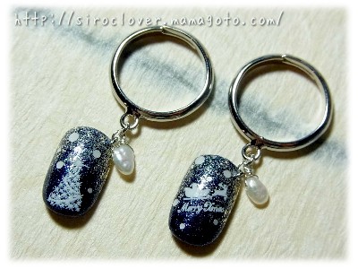 深いネイビーをベースにシルバーラメと白い丸ホロで雪を降らせました。