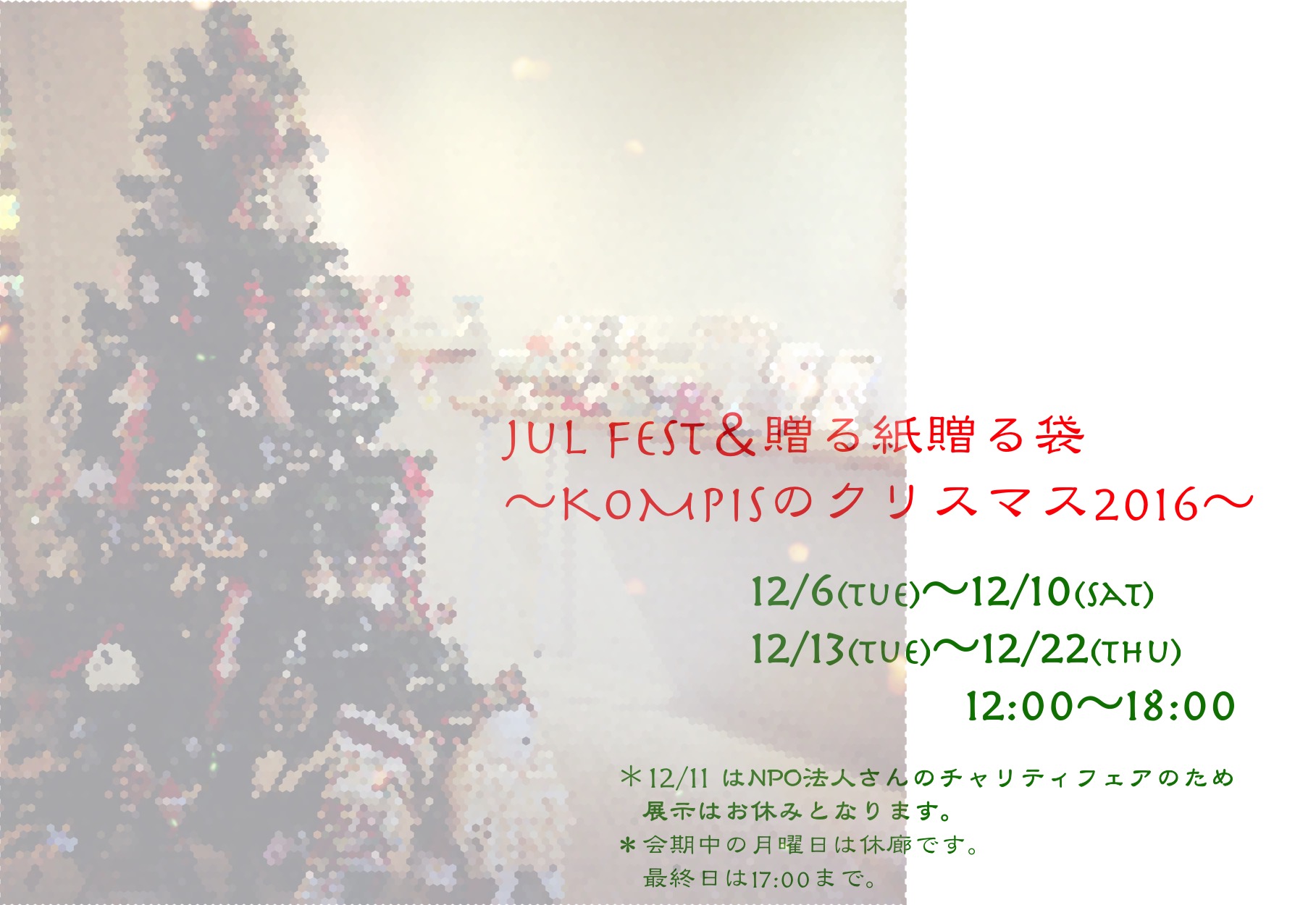 「Jul Fest&贈る紙贈る袋~KOMPISのクリスマス2016~」明日から後期が始まります♪